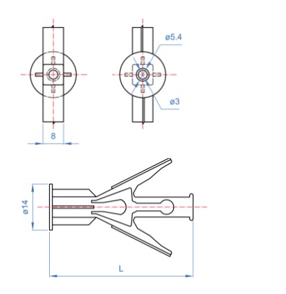 | Código | L: Longitud [mm] | Ø Broca [mm] | Mínimo Espesor del Material Base [mm] |